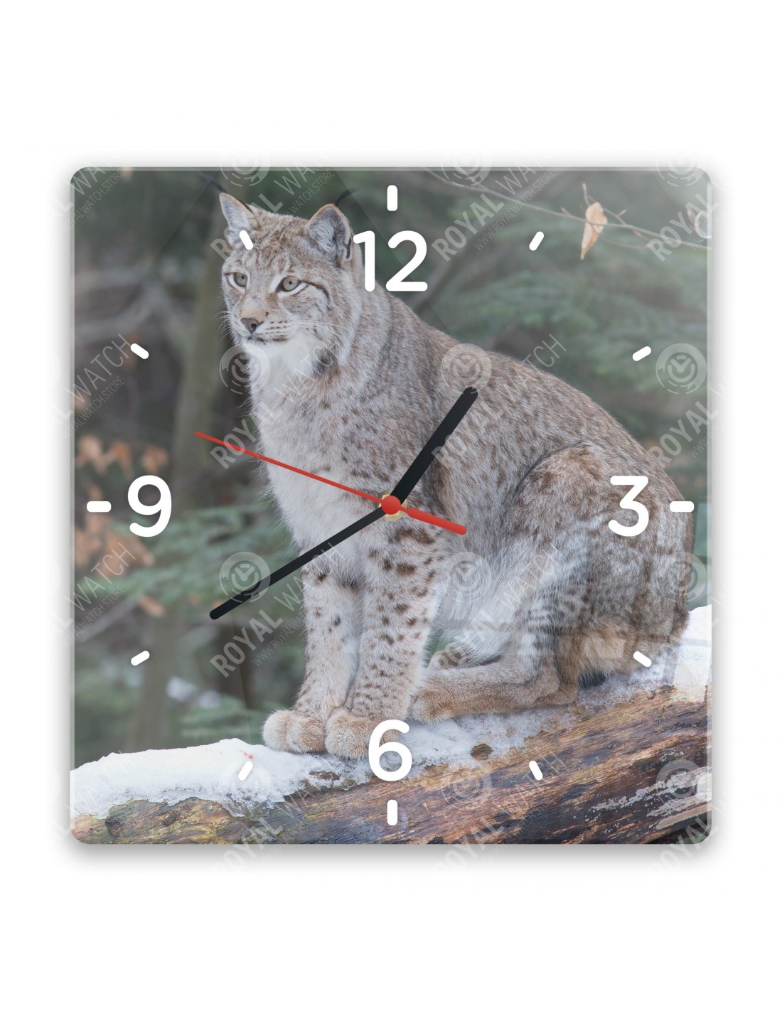 Zegar wykonany z akrylu ma następujące wymiary: kwadrat 28 x 28 cm, okrąg o średnicy 30 cm, prostokąt 20 x 30 cm i grubość 6 mm.
