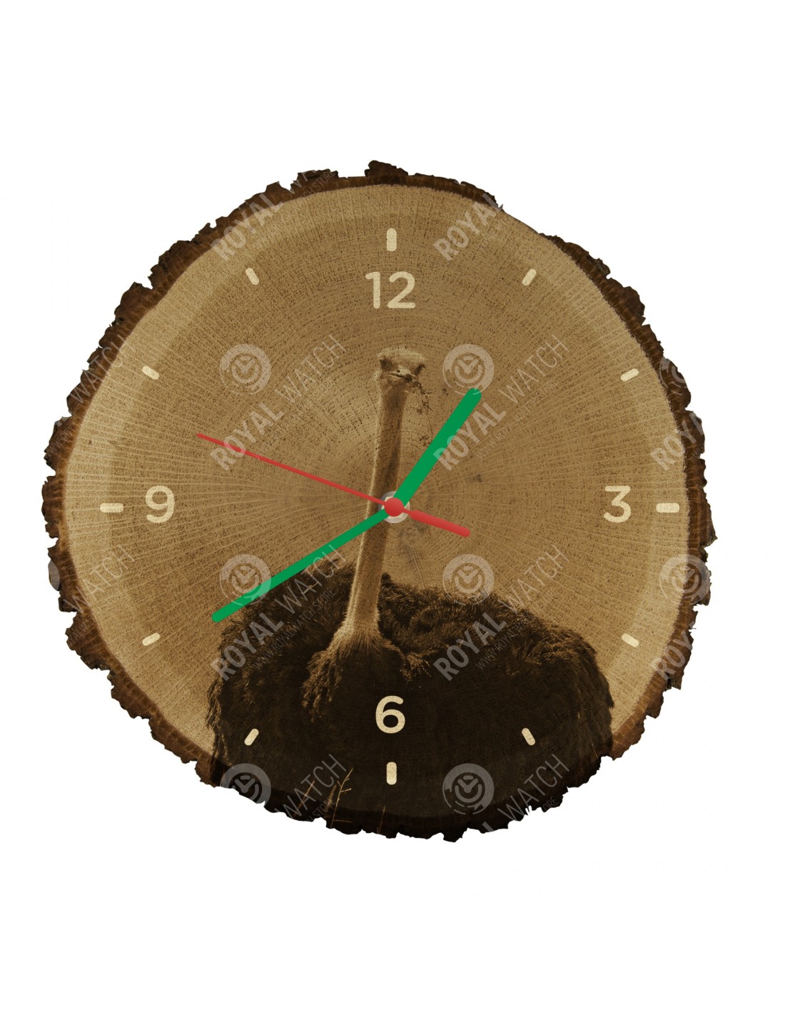 Zegar wykonany jest z dębowego przekroju o średnicy 30 cm (odchylenie 25% wielkości) i grubości 1 cm. Ponieważ zegar jest wykonany z czysto naturalnego materiału, możliwe jest, że zegar ma pęknięcia lub opadłą korę na obwodzie (maks. Do 30%).