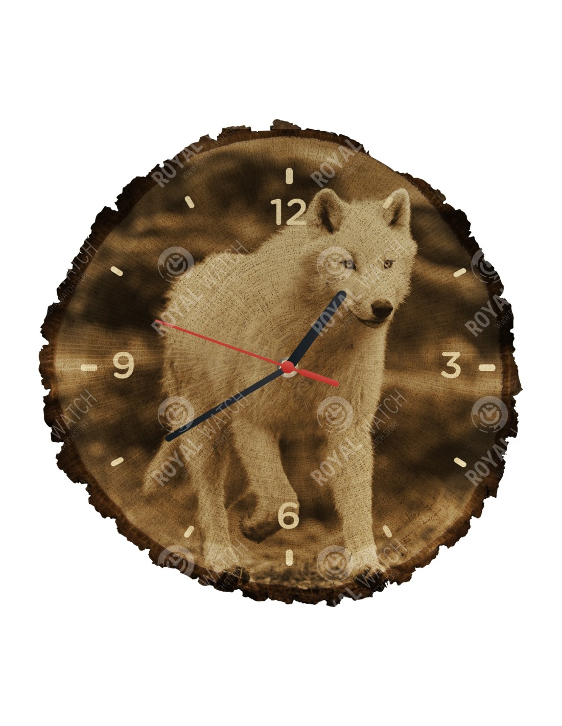 Zegar wykonany jest z dębowego przekroju o średnicy 30 cm (odchylenie 25% wielkości) i grubości 1 cm. Ponieważ zegar jest wykonany z czysto naturalnego materiału, możliwe jest, że zegar ma pęknięcia lub opadłą korę na obwodzie (maks. Do 30%).