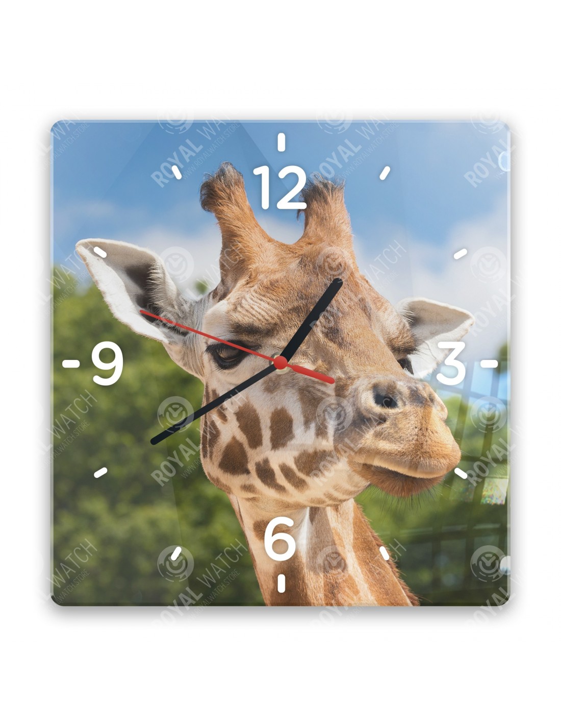 Zegar wykonany z akrylu ma następujące wymiary: kwadrat 28 x 28 cm, okrąg o średnicy 30 cm, prostokąt 20 x 30 cm i grubość 6 mm.