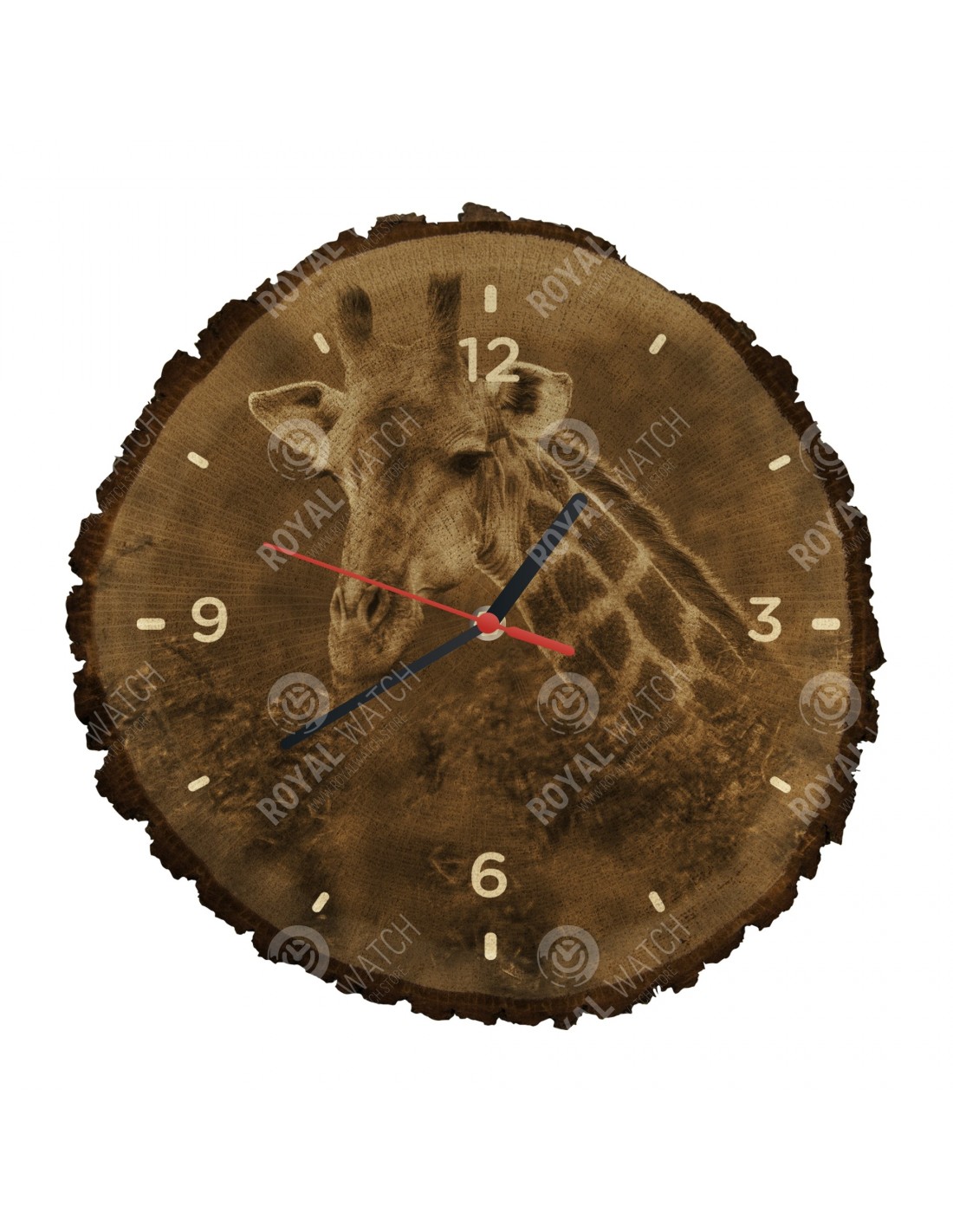 Zegar wykonany jest z dębowego przekroju o średnicy 30 cm (odchylenie 25% wielkości) i grubości 1 cm. Ponieważ zegar jest wykonany z czysto naturalnego materiału, możliwe jest, że zegar ma pęknięcia lub opadłą korę na obwodzie (maks. Do 30%).