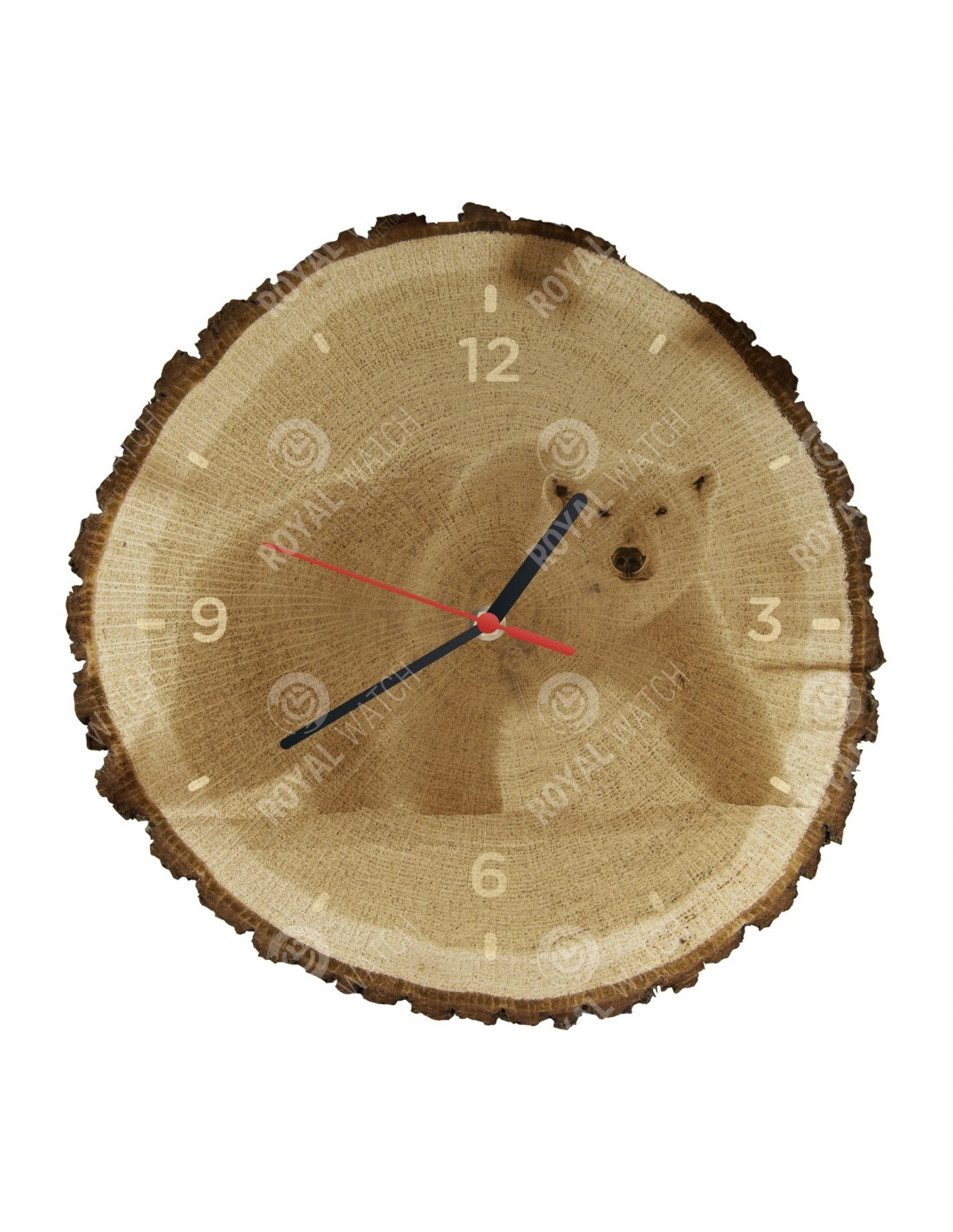 Часы изготовлены из дубового разреза, который имеет диаметр 30см (отклонение от 25% размера) и толщину 1см. Поскольку часы изготовлены из чисто природного материала, возможно, что часы имеют трещины или опавшую кору по окружности (максимально до 30%).