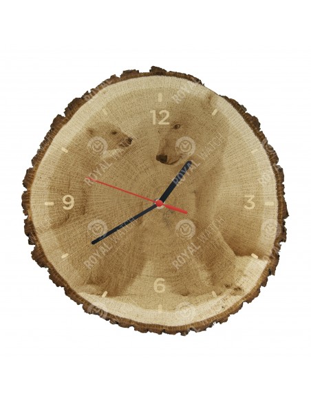 Часы изготовлены из дубового разреза, который имеет диаметр 30см (отклонение от 25% размера) и толщину 1см. Поскольку часы изготовлены из чисто природного материала, возможно, что часы имеют трещины или опавшую кору по окружности (максимально до 30%).