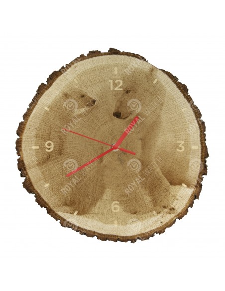 Часы изготовлены из дубового разреза, который имеет диаметр 30см (отклонение от 25% размера) и толщину 1см. Поскольку часы изготовлены из чисто природного материала, возможно, что часы имеют трещины или опавшую кору по окружности (максимально до 30%).