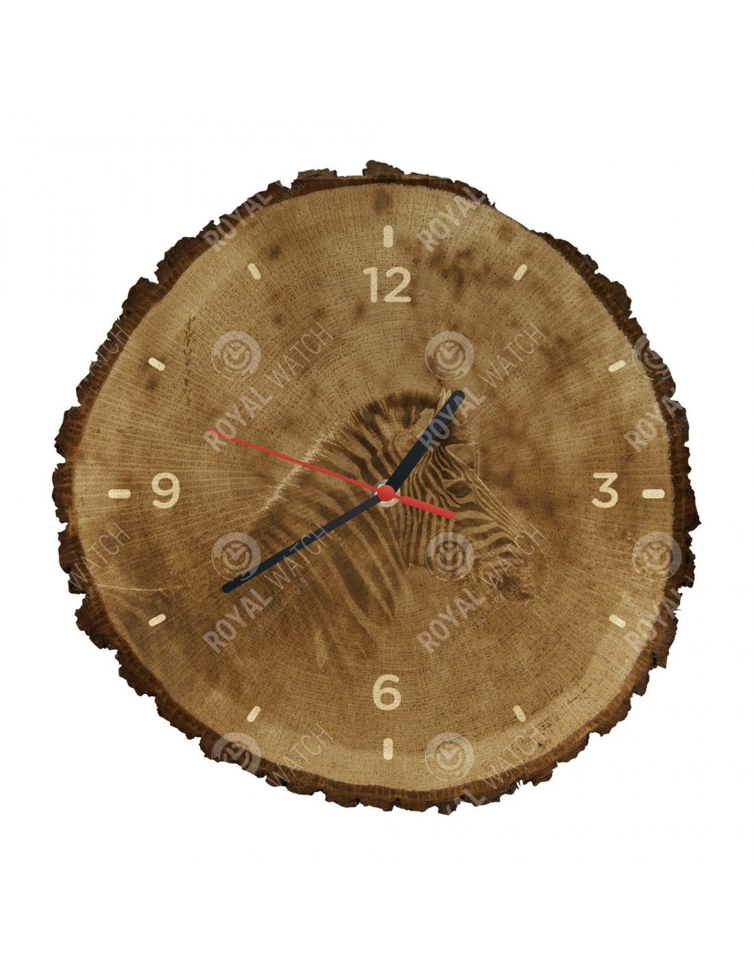 Часы изготовлены из дубового разреза, который имеет диаметр 30см (отклонение от 25% размера) и толщину 1см. Поскольку часы изготовлены из чисто природного материала, возможно, что часы имеют трещины или опавшую кору по окружности (максимально до 30%).