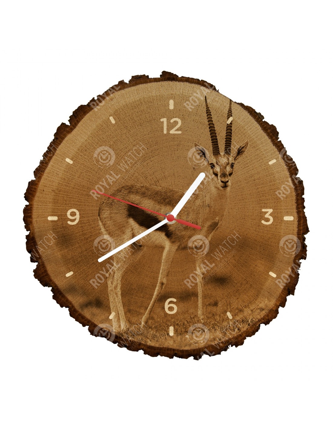 Часы изготовлены из дубового разреза, который имеет диаметр 30см (отклонение от 25% размера) и толщину 1см. Поскольку часы изготовлены из чисто природного материала, возможно, что часы имеют трещины или опавшую кору по окружности (максимально до 30%).