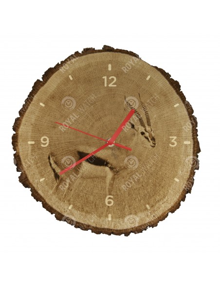 Часы изготовлены из дубового разреза, который имеет диаметр 30см (отклонение от 25% размера) и толщину 1см. Поскольку часы изготовлены из чисто природного материала, возможно, что часы имеют трещины или опавшую кору по окружности (максимально до 30%).