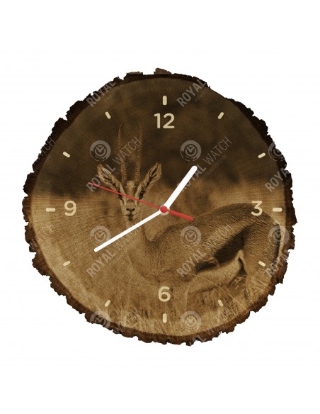 Часы изготовлены из дубового разреза, который имеет диаметр 30см (отклонение от 25% размера) и толщину 1см. Поскольку часы изготовлены из чисто природного материала, возможно, что часы имеют трещины или опавшую кору по окружности (максимально до 30%).