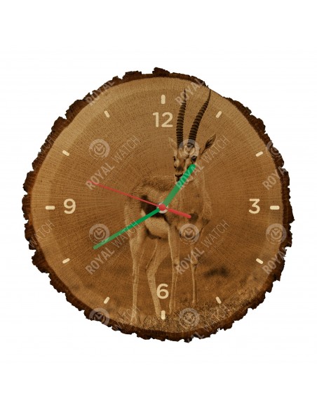 Часы изготовлены из дубового разреза, который имеет диаметр 30см (отклонение от 25% размера) и толщину 1см. Поскольку часы изготовлены из чисто природного материала, возможно, что часы имеют трещины или опавшую кору по окружности (максимально до 30%).