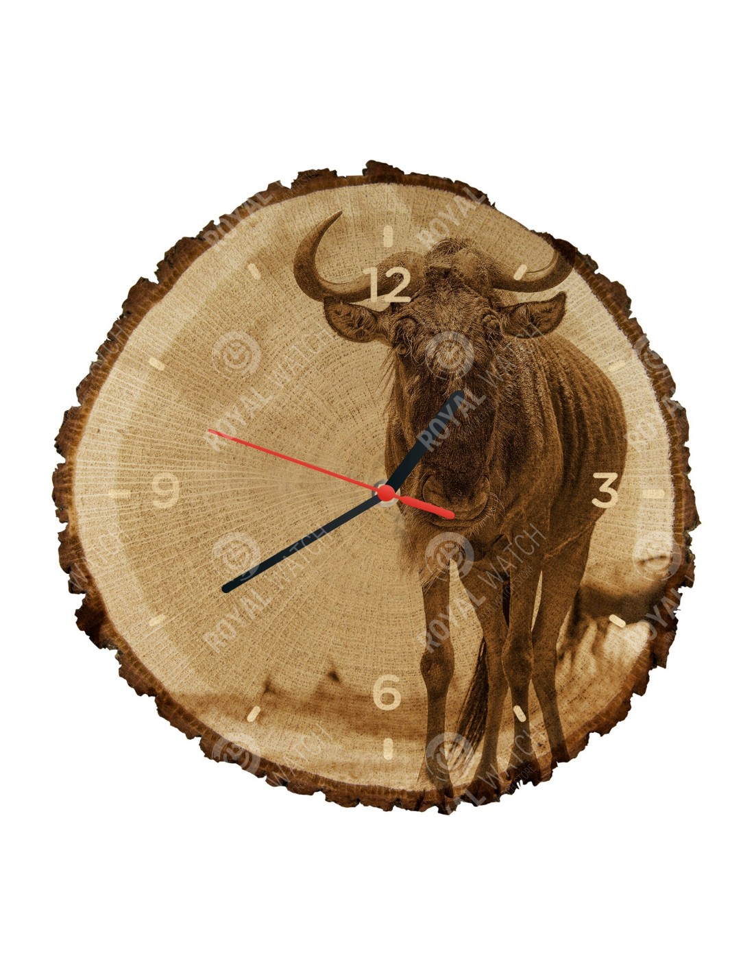 Часы изготовлены из дубового разреза, который имеет диаметр 30см (отклонение от 25% размера) и толщину 1см. Поскольку часы изготовлены из чисто природного материала, возможно, что часы имеют трещины или опавшую кору по окружности (максимально до 30%).