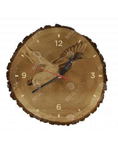 Часы изготовлены из дубового разреза, который имеет диаметр 30см (отклонение от 25% размера) и толщину 1см. Поскольку часы изготовлены из чисто природного материала, возможно, что часы имеют трещины или опавшую кору по окружности (максимально до 30%).