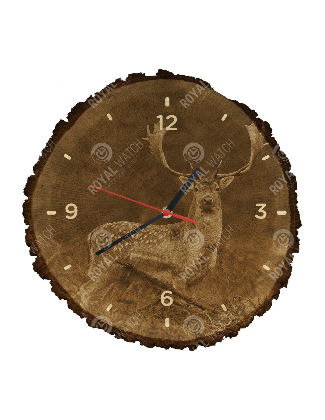 Часы изготовлены из дубового разреза, который имеет диаметр 30см (отклонение от 25% размера) и толщину 1см. Поскольку часы изготовлены из чисто природного материала, возможно, что часы имеют трещины или опавшую кору по окружности (максимально до 30%).