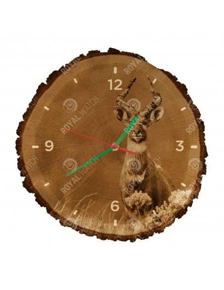 Часы изготовлены из дубового разреза, который имеет диаметр 30см (отклонение от 25% размера) и толщину 1см. Поскольку часы изготовлены из чисто природного материала, возможно, что часы имеют трещины или опавшую кору по окружности (максимально до 30%).