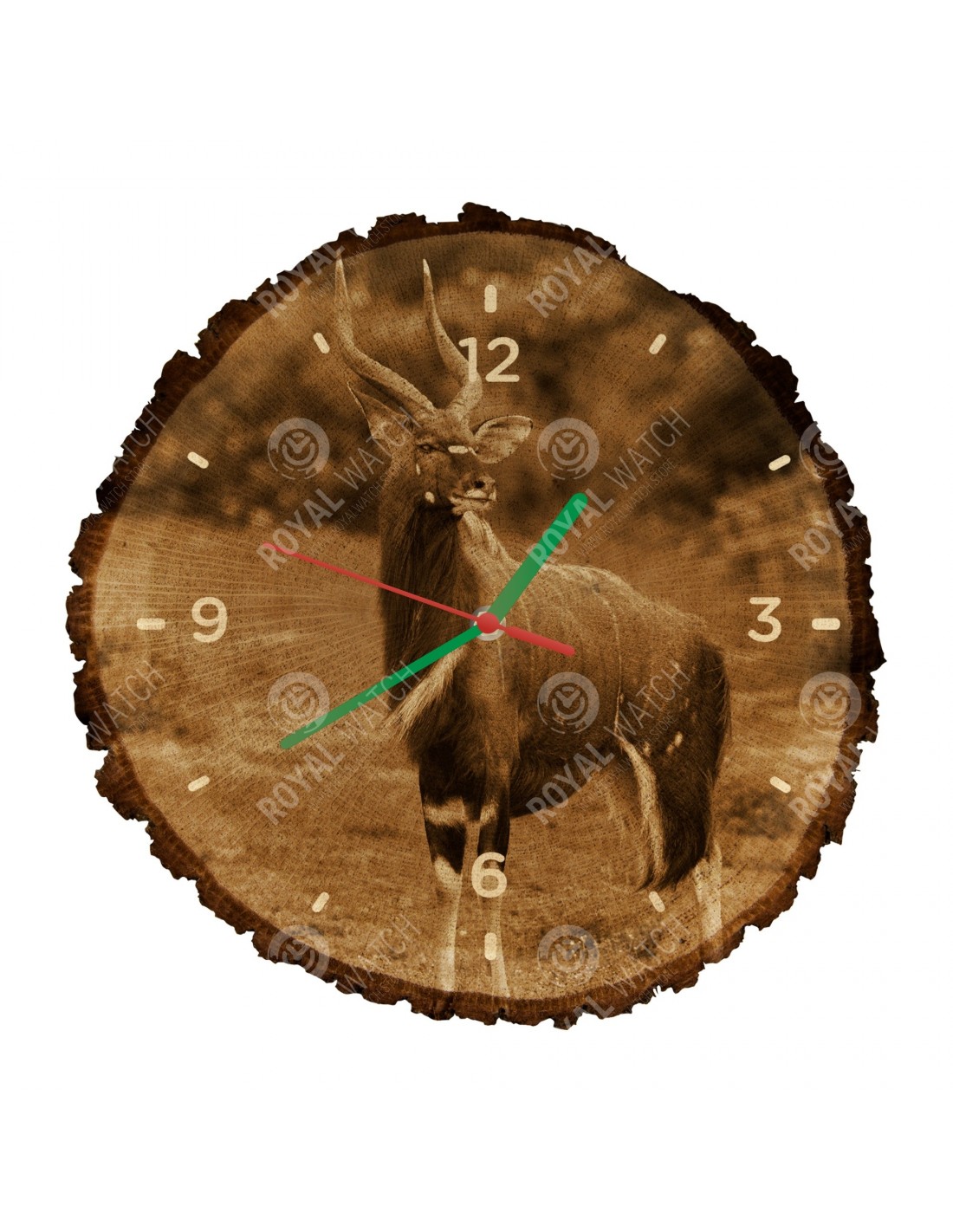 Часы изготовлены из дубового разреза, который имеет диаметр 30см (отклонение от 25% размера) и толщину 1см. Поскольку часы изготовлены из чисто природного материала, возможно, что часы имеют трещины или опавшую кору по окружности (максимально до 30%).