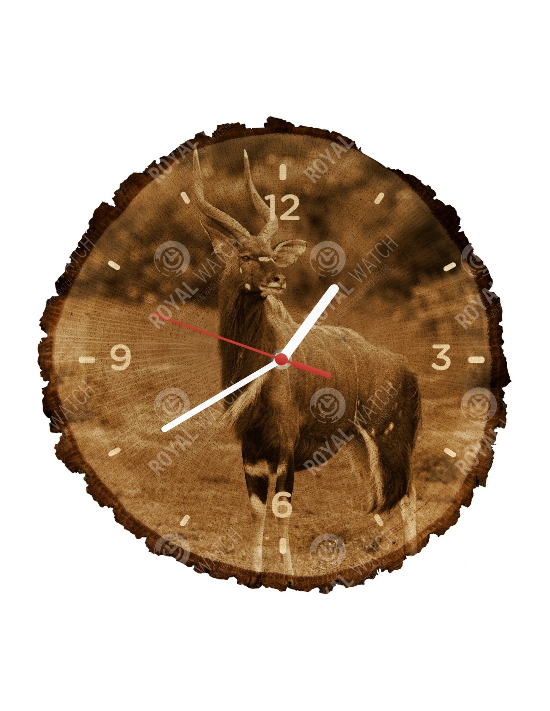 Часы изготовлены из дубового разреза, который имеет диаметр 30см (отклонение от 25% размера) и толщину 1см. Поскольку часы изготовлены из чисто природного материала, возможно, что часы имеют трещины или опавшую кору по окружности (максимально до 30%).