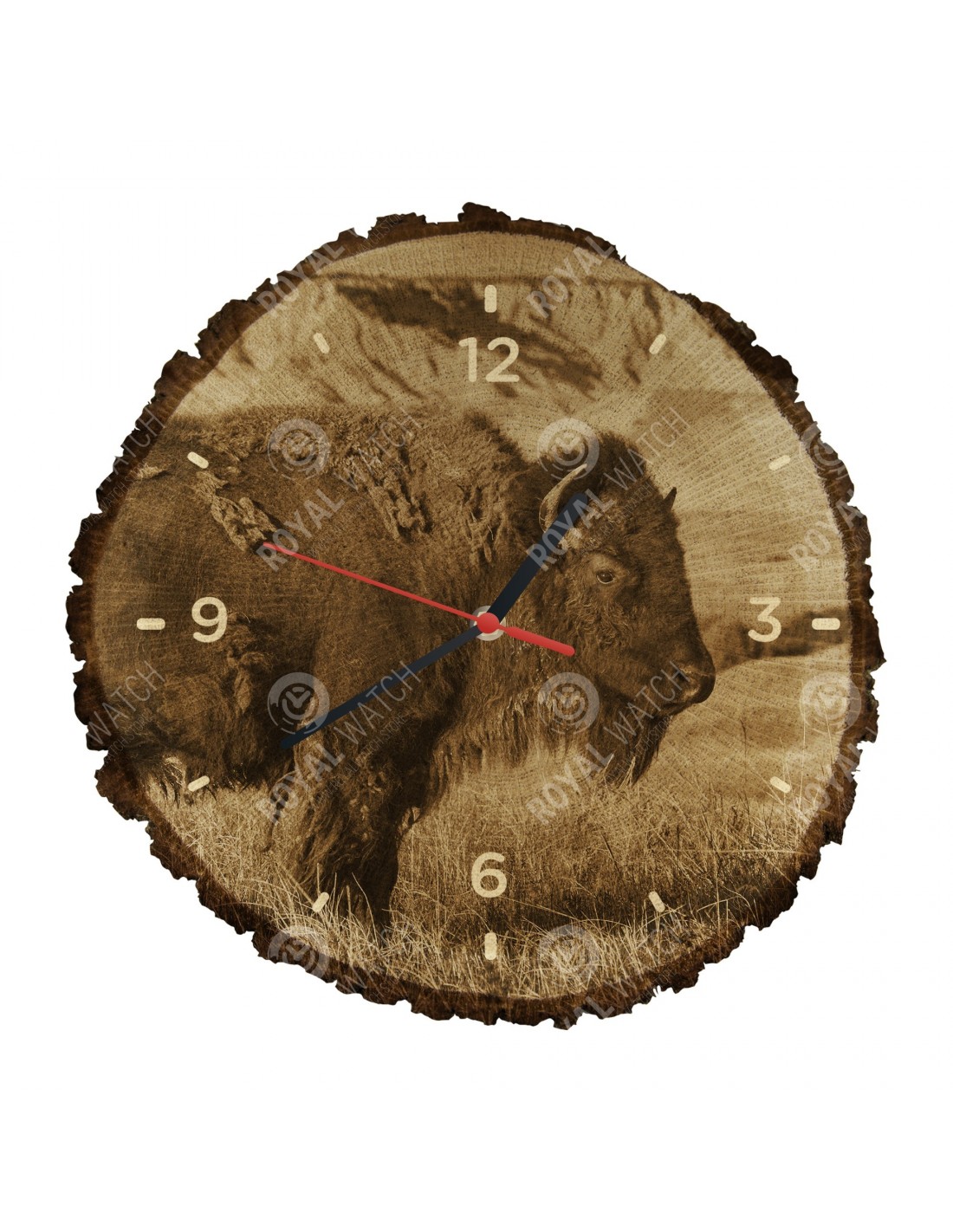 Hodiny sú vyrobené z dubového prierezu, ktoré majú priemer 30cm (odchýlka 25% veľkosti) a hrúbkou 1cm. Keďže hodiny sú vyrobené z čisto prírodného materiálu je možné, že na hodinách sú praskliny alebo opadaná kôra po obvode (max. do 30%).