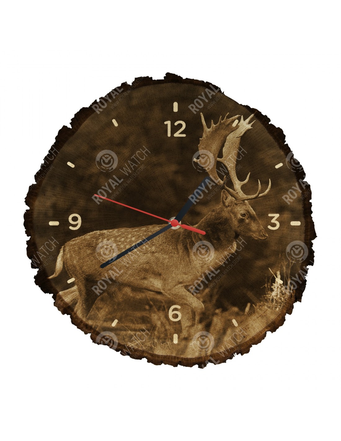 Hodiny sú vyrobené z dubového prierezu, ktoré majú priemer 30cm (odchýlka 25% veľkosti) a hrúbkou 1cm. Keďže hodiny sú vyrobené z čisto prírodného materiálu je možné, že na hodinách sú praskliny alebo opadaná kôra po obvode (max. do 30%).