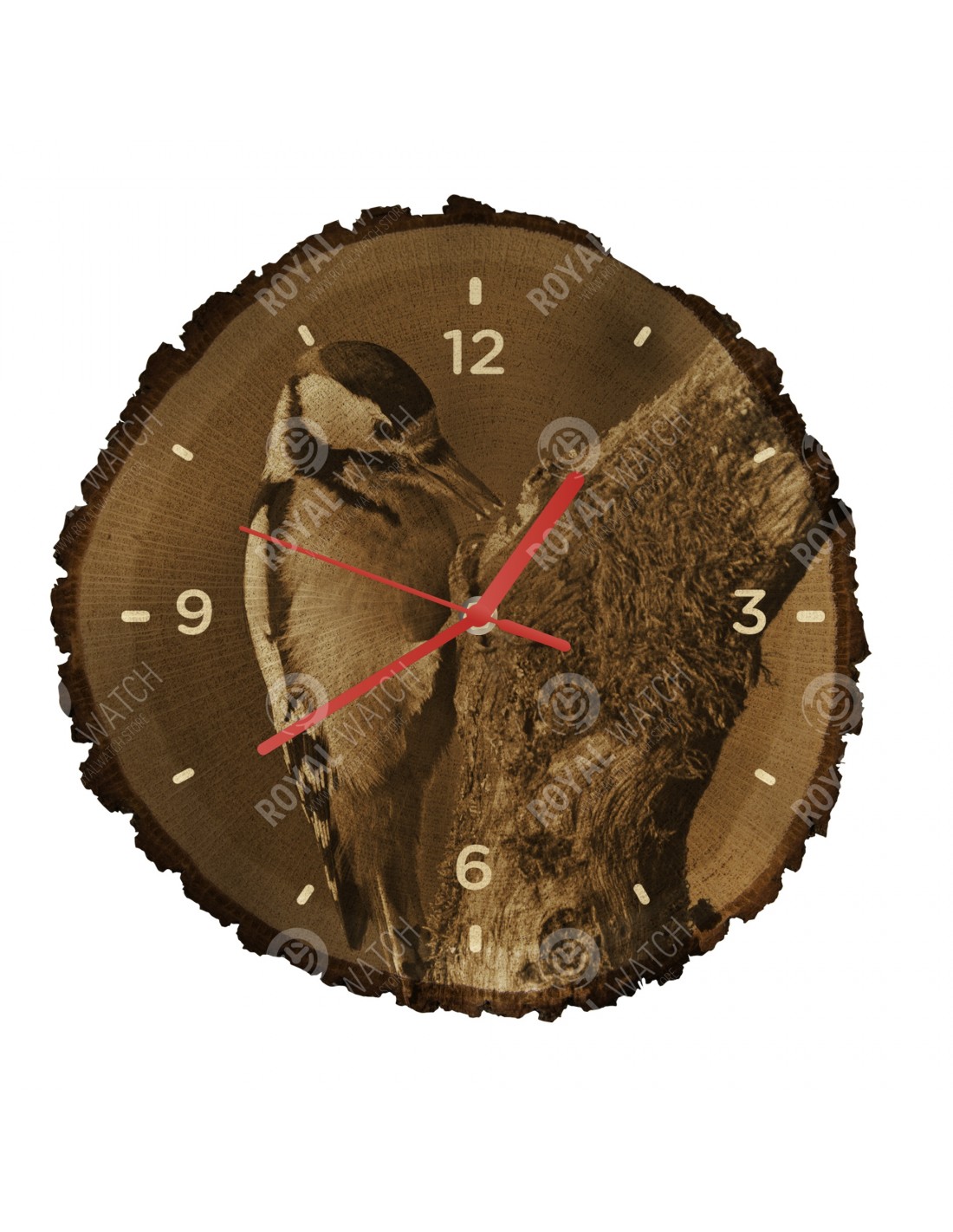 Hodiny sú vyrobené z dubového prierezu, ktoré majú priemer 30cm (odchýlka 25% veľkosti) a hrúbkou 1cm. Keďže hodiny sú vyrobené z čisto prírodného materiálu je možné, že na hodinách sú praskliny alebo opadaná kôra po obvode (max. do 30%).