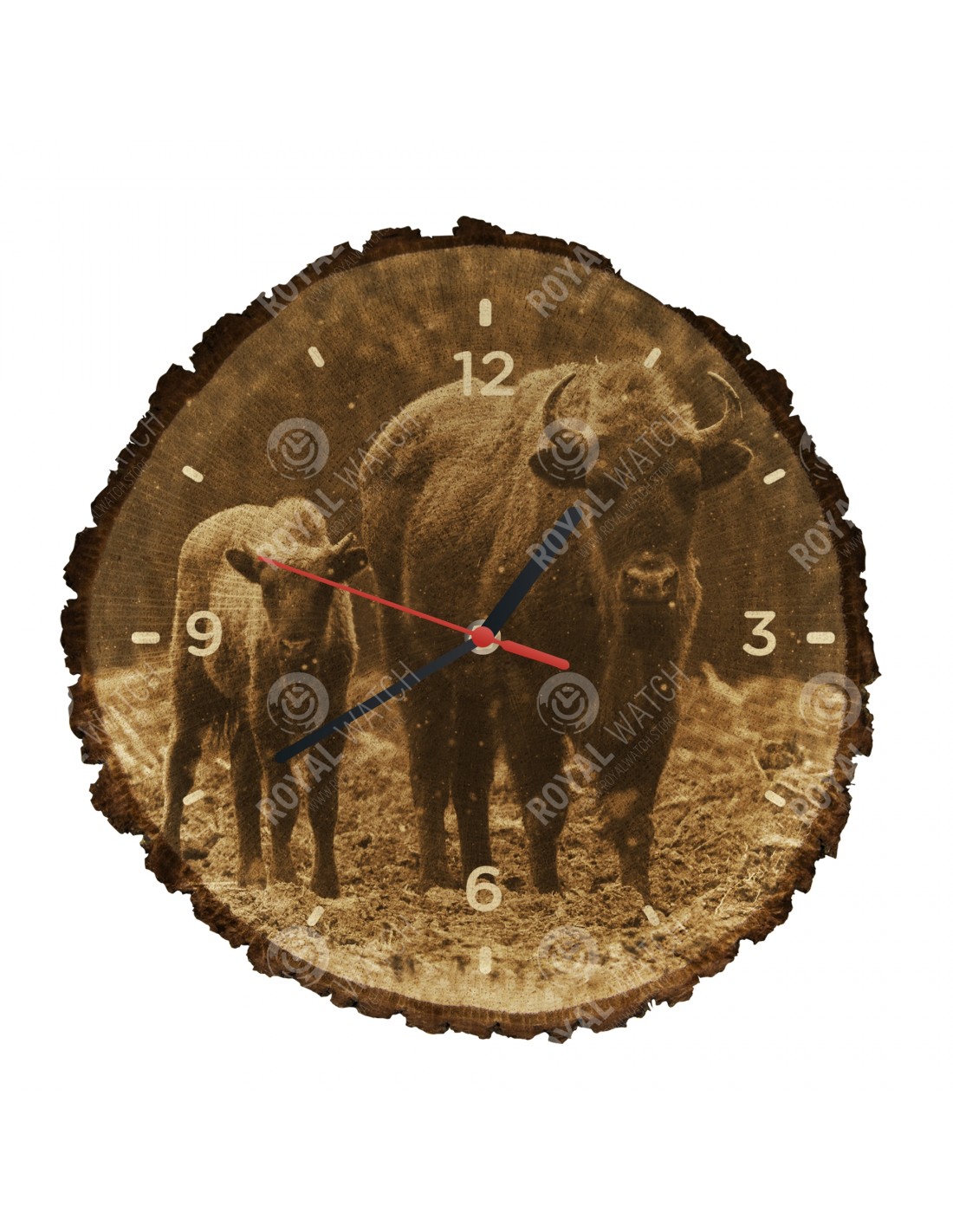 Hodiny sú vyrobené z dubového prierezu, ktoré majú priemer 30cm (odchýlka 25% veľkosti) a hrúbkou 1cm. Keďže hodiny sú vyrobené z čisto prírodného materiálu je možné, že na hodinách sú praskliny alebo opadaná kôra po obvode (max. do 30%).