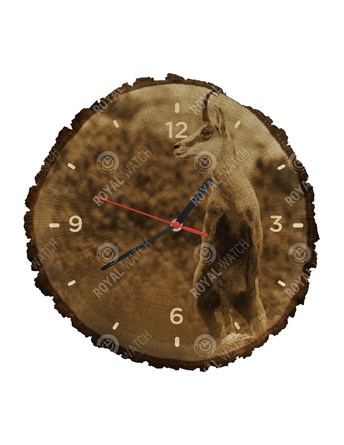 Hodiny sú vyrobené z dubového prierezu, ktoré majú priemer 30cm (odchýlka 25% veľkosti) a hrúbkou 1cm. Keďže hodiny sú vyrobené z čisto prírodného materiálu je možné, že na hodinách sú praskliny alebo opadaná kôra po obvode (max. do 30%).
