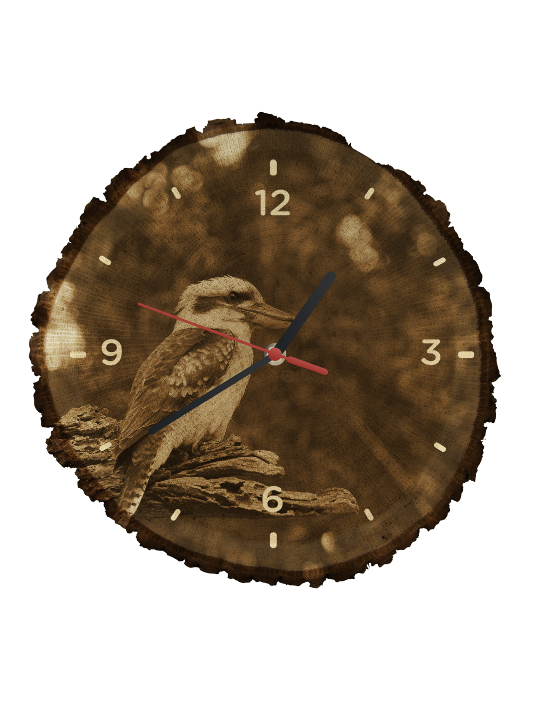 Hodiny sú vyrobené z dubového prierezu, ktoré majú priemer 30cm (odchýlka 25% veľkosti) a hrúbkou 1cm. Keďže hodiny sú vyrobené z čisto prírodného materiálu je možné, že na hodinách sú praskliny alebo opadaná kôra po obvode (max. do 30%).
