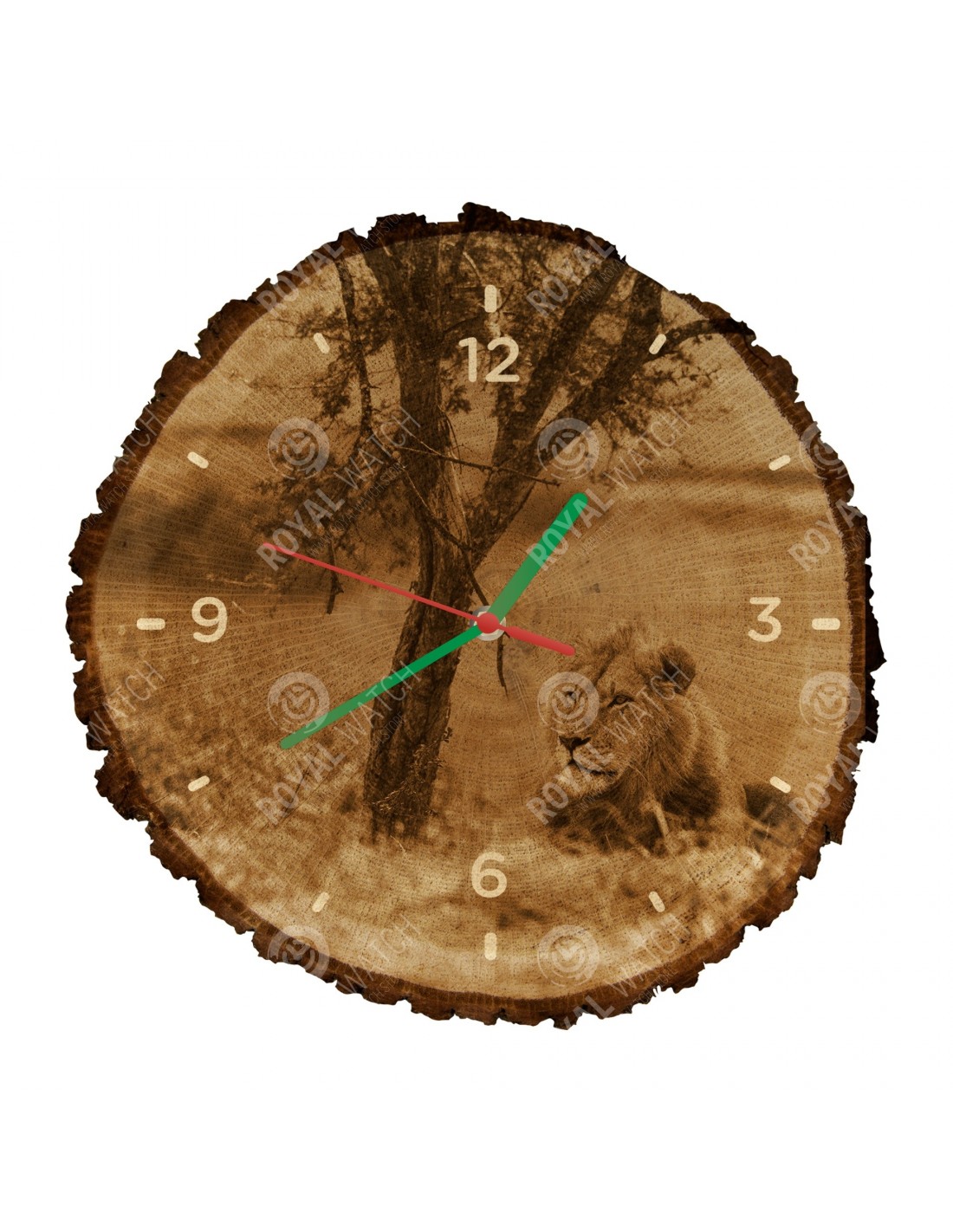 Hodiny sú vyrobené z dubového prierezu, ktoré majú priemer 30cm (odchýlka 25% veľkosti) a hrúbkou 1cm. Keďže hodiny sú vyrobené z čisto prírodného materiálu je možné, že na hodinách sú praskliny alebo opadaná kôra po obvode (max. do 30%).