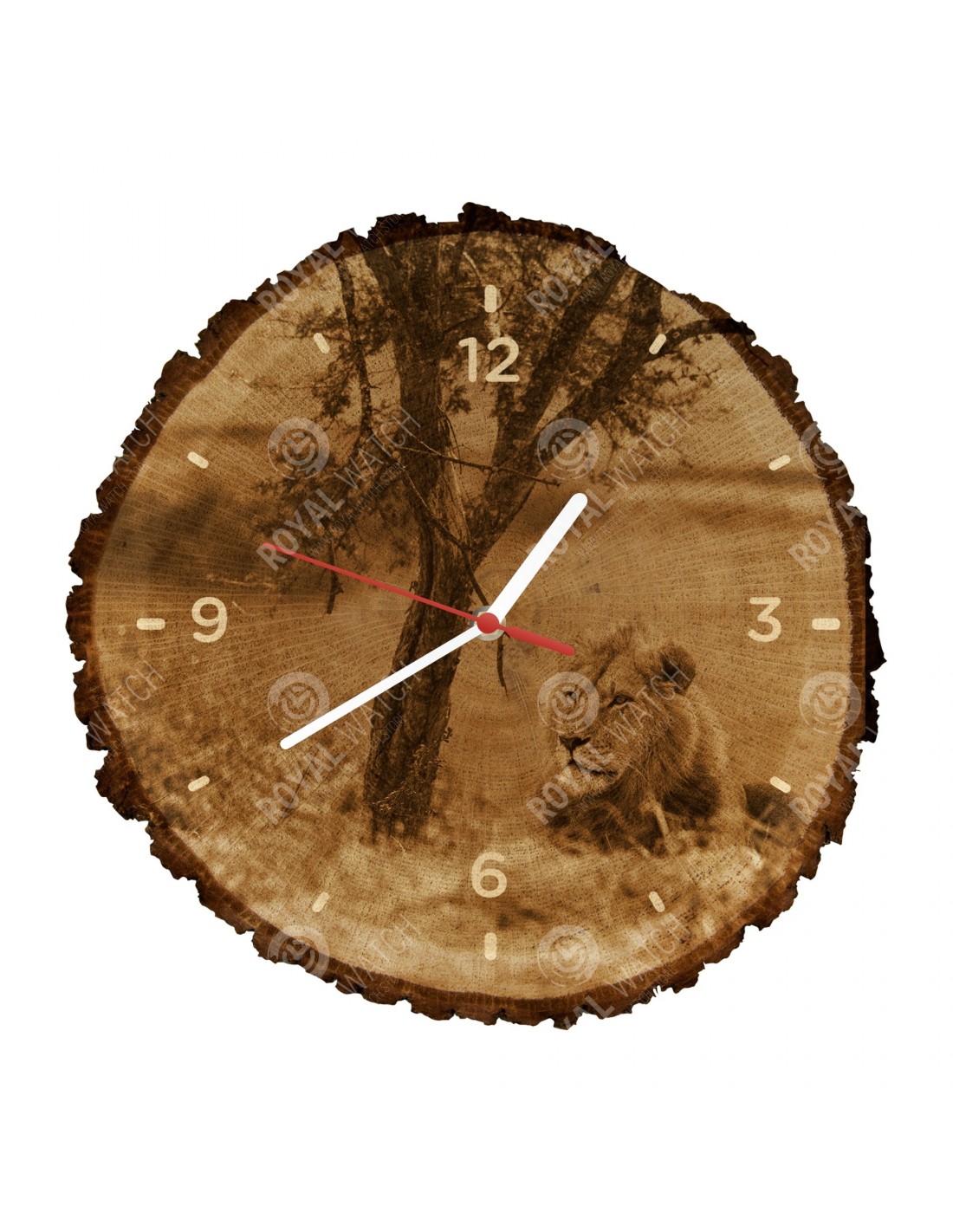 Hodiny sú vyrobené z dubového prierezu, ktoré majú priemer 30cm (odchýlka 25% veľkosti) a hrúbkou 1cm. Keďže hodiny sú vyrobené z čisto prírodného materiálu je možné, že na hodinách sú praskliny alebo opadaná kôra po obvode (max. do 30%).