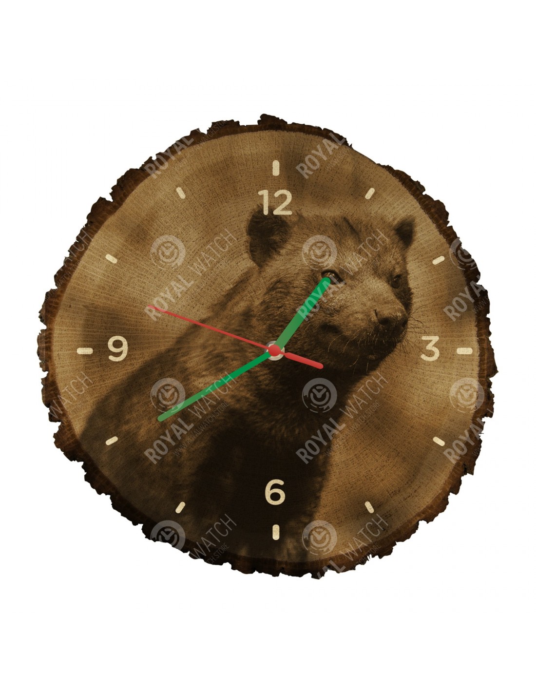 Hodiny sú vyrobené z dubového prierezu, ktoré majú priemer 30cm (odchýlka 25% veľkosti) a hrúbkou 1cm. Keďže hodiny sú vyrobené z čisto prírodného materiálu je možné, že na hodinách sú praskliny alebo opadaná kôra po obvode (max. do 30%).