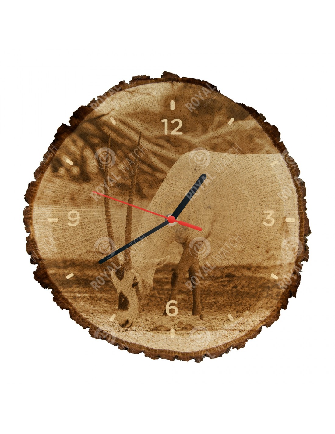 Hodiny sú vyrobené z dubového prierezu, ktoré majú priemer 30cm (odchýlka 25% veľkosti) a hrúbkou 1cm. Keďže hodiny sú vyrobené z čisto prírodného materiálu je možné, že na hodinách sú praskliny alebo opadaná kôra po obvode (max. do 30%).