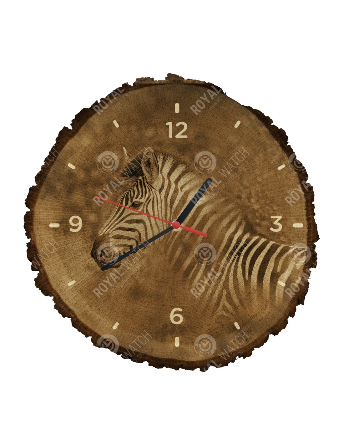Hodiny sú vyrobené z dubového prierezu, ktoré majú priemer 30cm (odchýlka 25% veľkosti) a hrúbkou 1cm. Keďže hodiny sú vyrobené z čisto prírodného materiálu je možné, že na hodinách sú praskliny alebo opadaná kôra po obvode (max. do 30%).